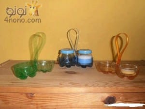 نلون الزجاجات بعد قطعها ونعمل منها شيالة حلوى وشكولا.