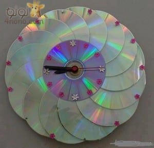 نلصقها ونعمل فيها ساعة حائط جميلة عن طريق خلع عدة الساعة القديمة ووضعها فيها بعد ثقبها ثقب صغير على اد دخول سن العقارب.