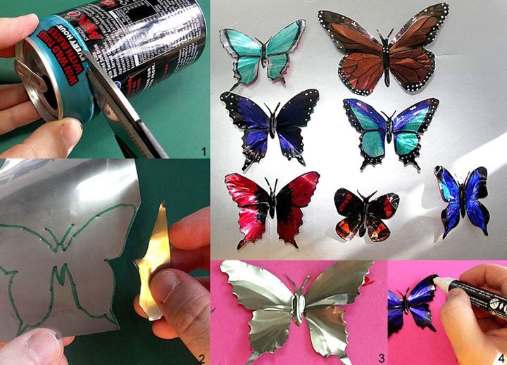 7- من علب الكانز الفارغة اصنعي فراشات جميلة