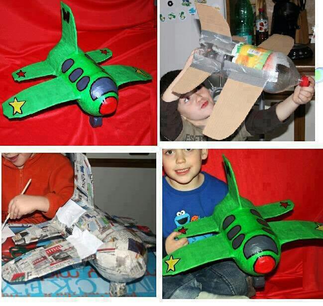 8- من الزجاجات القديمة الفارغة اصنعي طيارة لطفلك