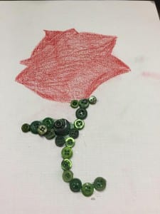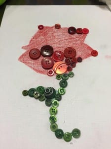 دعي الأطفال يستعملون الأزرار في تلوينها ولصقها على اللوحات كما بالصورة.
