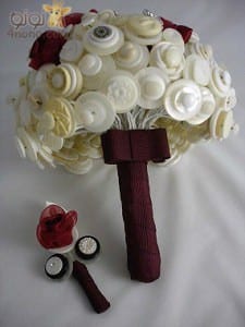 يمكنك باستخدام أزرار ذات اللون البيج والأبيض وترصيها بشكل متناسق أن تزيّني بوكيه العروسة، أو اختيار ألوان أزرار بنفس لون فستان العروسة إذا كانت المناسبة خطوبة.