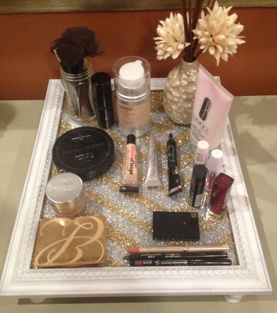 ثبتي عليها لوحًا خشبيًا ولونيه بالجليتر واجمعي عليه أدوات مكياجك.