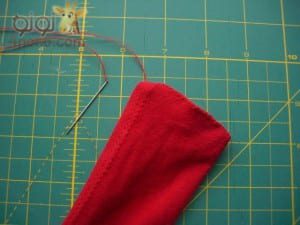 ونترك الطرف الصغير مفتوحًا ليسهل قلبها على الوجه بعد الخياطة.