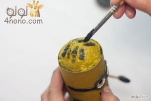 ويتم تلوين الرأس بالطلاء الأصفر، ويمكن استبدال ذلك بورق القص واللزق الملوَّن بدل الطلاء.