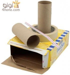 يتم لصق الصندوق من أسفل باللاصق الورقي أو الغراء حتى نحصل على لعبة الونش.