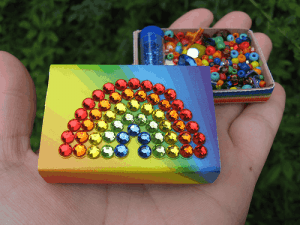 2- ثم بعد ذلك نقوم بأستخدام الملصقات ونضعها فى الجزء العلوى بالنسبه لك على علبه الكبريت كمان هو مبين بالصوره.