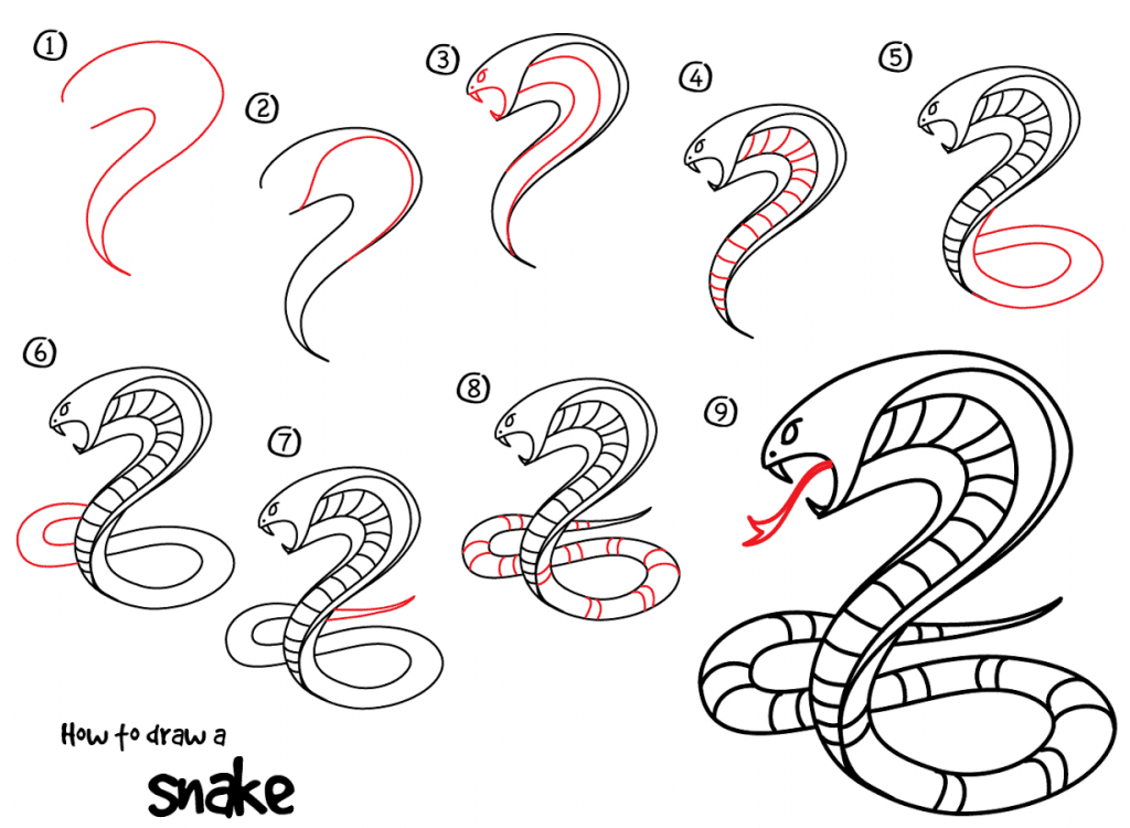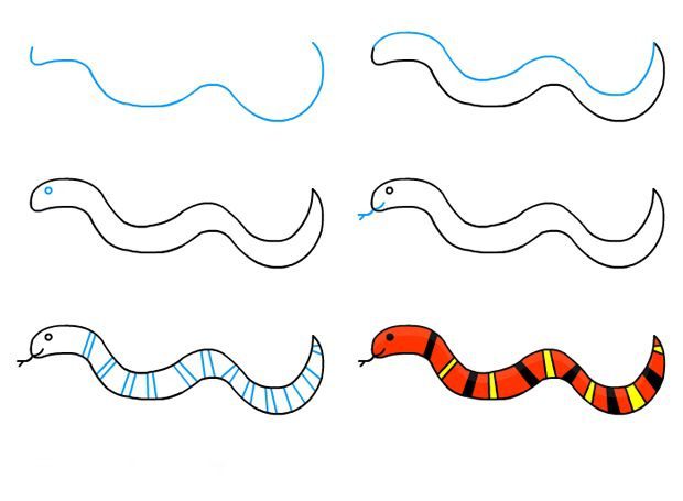 تعليم الطفل طريقة رسم الثعبان بالصور وببساطة خطوة بخطوة