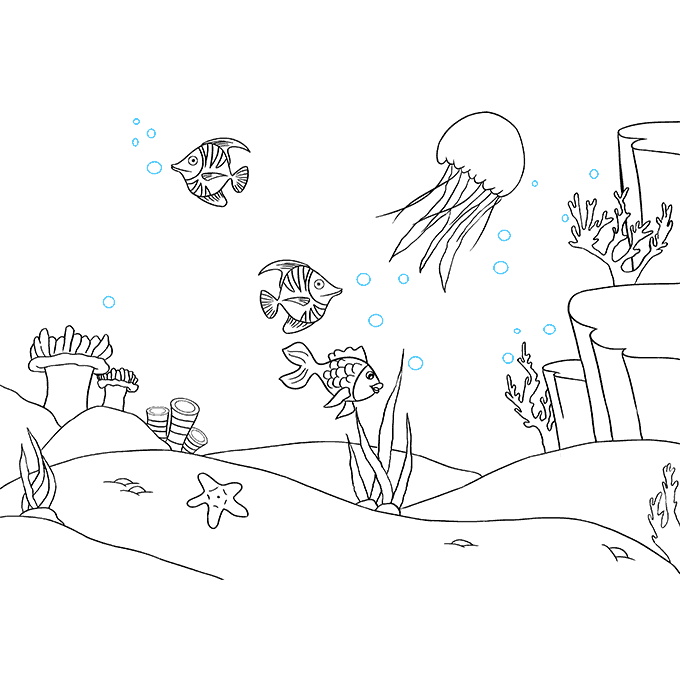 طريقة رسم عالم البحار بالصور خطوة بخطوة