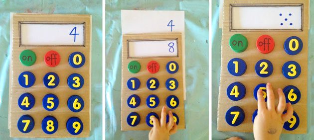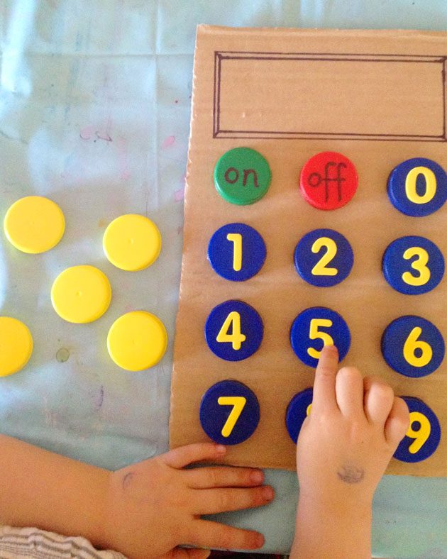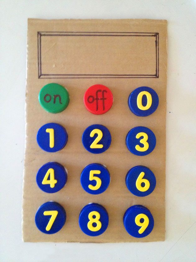 الرياضيات والطرح والقسمة وجدول الضرب معضلة أطفال المدارس، فوققا لهم لماذا نحفظ جدول الضرب في وجود الألة الحاسبة، وبالفعل يستخدمونها في أبسط العمليات، نساعدك هنا في عمل ألة حاسبة من الكارتون وأغطية الزجاجات تستخدميها في تشجيع طفلك على عمل العمليات البسيطة من خلال وضع ورقة مكتوب عليها المسألة مكان الشاشة.