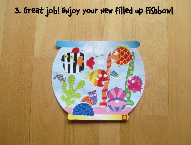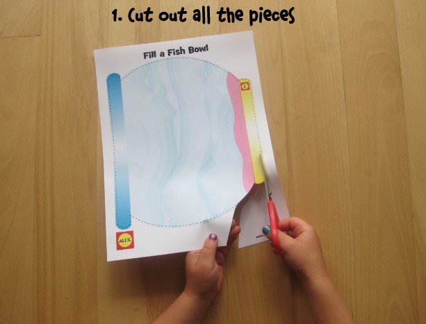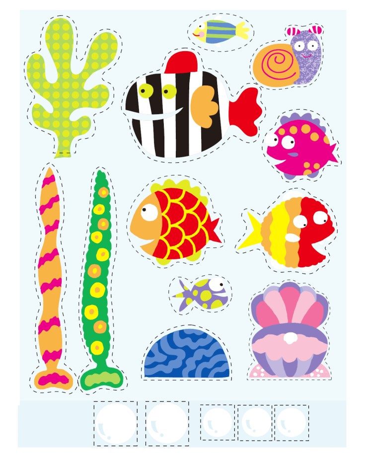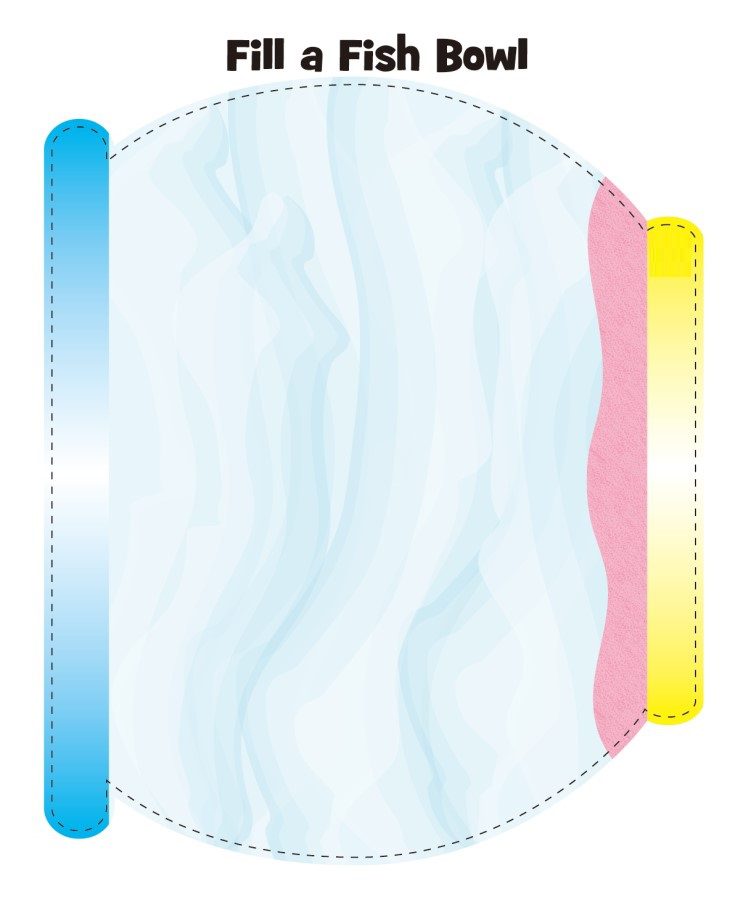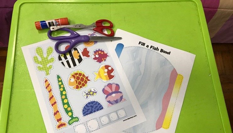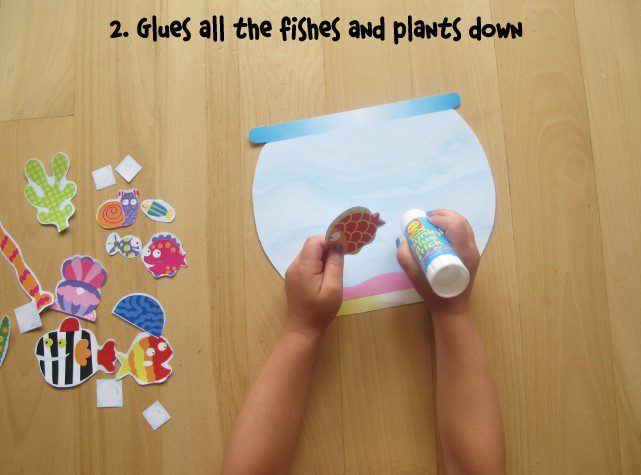 – ثم اطلبى من الاطفال ان يقصوا الاحواض ويقوموا بتفريغ الاسماك و لصقها على حوض السمك.