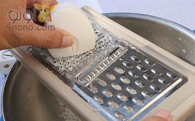 يتم بشر الصابون فى اناء معدنى و ممكن استعمال نصف الكمية من الصابون