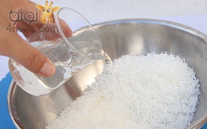 يتم وضع القليل من الماء لتسهيل اذابة الصابون.