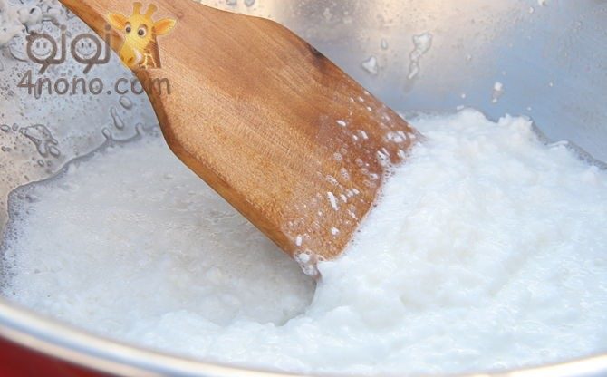على نار هادئة يتم اذابة الخليط مع التقليب حتى يتبخر الماء قليلا ويتم الخلط جيدا.