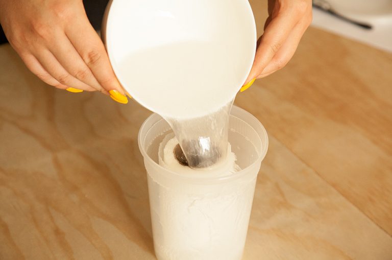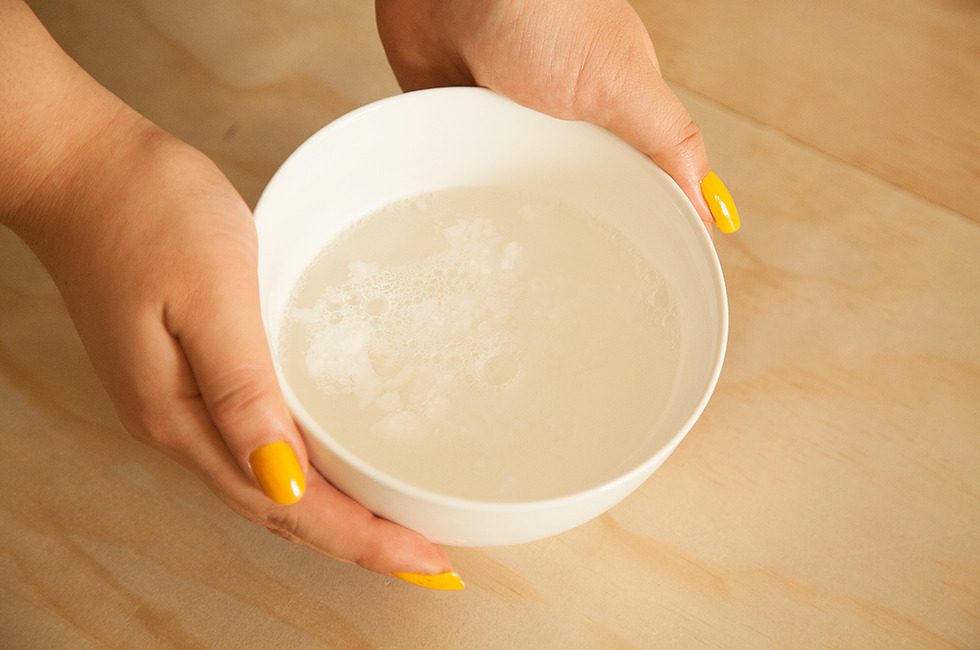 يتم خلط الماء وزيت جوز الهند و غسول الاطفال فى اناء ثم يوضعو فى الميكرويف للتدفئة لعدة ثوانى ويمكن اذا لم يوجد مايكرويف يوضع الخليط فى اناء معدنى ويدفىء فى حمام ماء ساخن حتى يختلطوا فقط لا نريد تسخين.