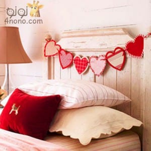 ممكن نعمل تغير بسيط فى السرير مثلا نعلق شريط تل على وجه السرير او قماش ستان او قلوب بسيطة من القماش وممكن نعمل خلفية بالطلاء نغير لون حاط السرير او نضع ورق حائط خلف السرير فقط بمنظر طبيعى او نعمل وردات واشكال من الورق المقوى او الفوم ونلصقها على الحائط.