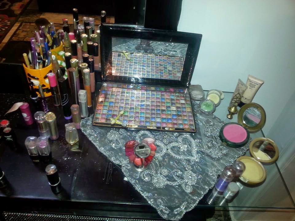 مثلا علب الحلاوة الطحينية او علب البلاستيك اغسليها وجففيها او اي علب من محلات البلاستيك وخصصي كل علبة لشيء ليسهل العثور عليها مثلا علبة للروج وعلبة للايشادو وعلبة للاقلام تحديد الشفايف والكحل و علبة للتوك وعلبة للاكسسوار وهكذا.