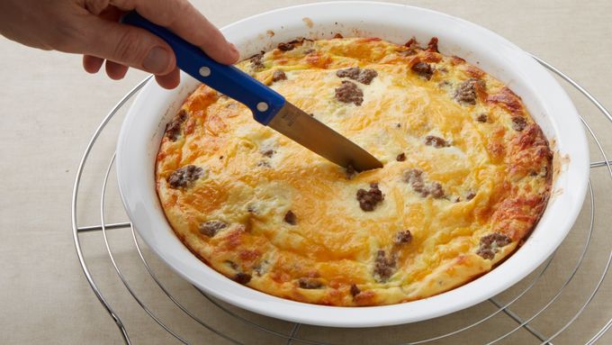 4. اخفقي البيض والحليب والطحين والبكينج بودر في وعاء عميق ثم أضيفي الخليط إلى اللحم.