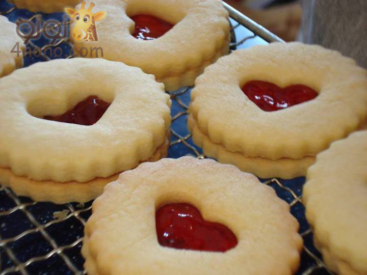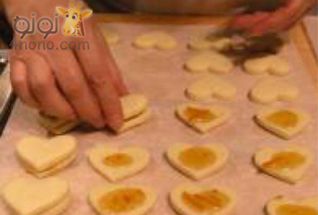 دى بقطاعة قلوب وقطعنا من الداخل بقلب اصغر ودهناها مربى من الداخل ولصقنا الاخرى