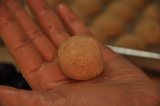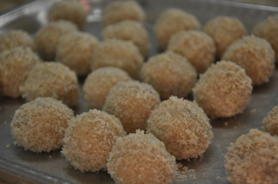 ندحرج الكور باللوز ونبردها بالثلاجه حوالي الساعه