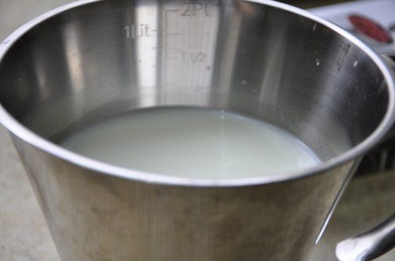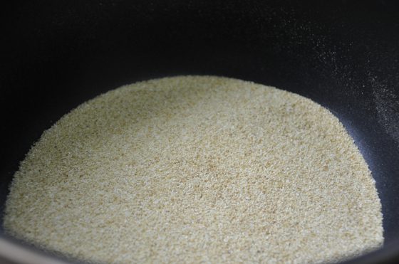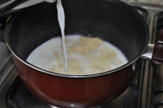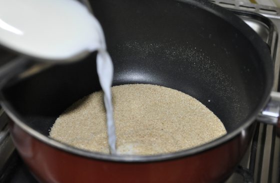 نسكب مقدار الحليب على السميد فور الانتهاء من تحميصة .