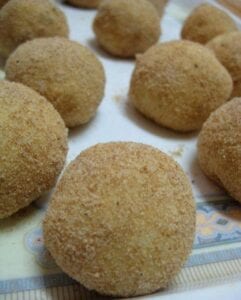 تغمس الكرات فى البيض ثم الدقيق ثم البيض مرة اخرى ثم تغطى بالبقسماط يمكنك عمل كمية وتقسيمها فى اكياس بعد ان تغلفيها بالقسماط وتحفظ بالفريز مدة شهر وتأخذى منها على زيت ساخن جدا