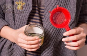 – ضعى ماده الاستخراج ” خل التفاح، ملء البرطمان ”