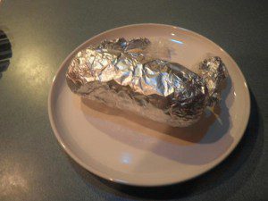 -ثم نلفه بورق الومنيوم نضع الرول بحلة على النار فيها ماء ساخن وورق لورا وملح وفلفل اسود لمدة ساعة على نار هادية